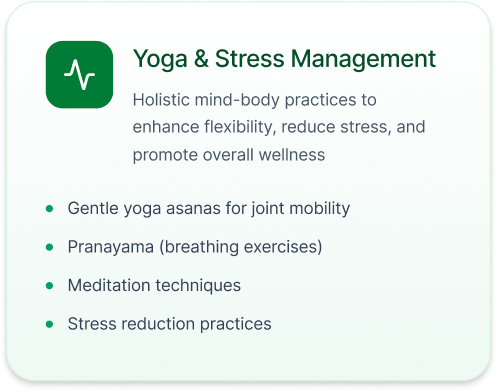 - Abhyanga: Therapeutic massage with medicated oils to improve circulation, reduce stiffness, and soothe pain.