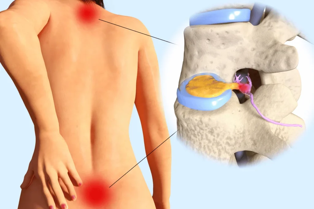 Spinal disc herniation also known as slipped disc / prolapse is a medical condition affecting the spine in which a tear in the outer, fibrous ring of an inter – vertebral disc allows the soft, central portion to bulge out beyond the damaged outer rings.